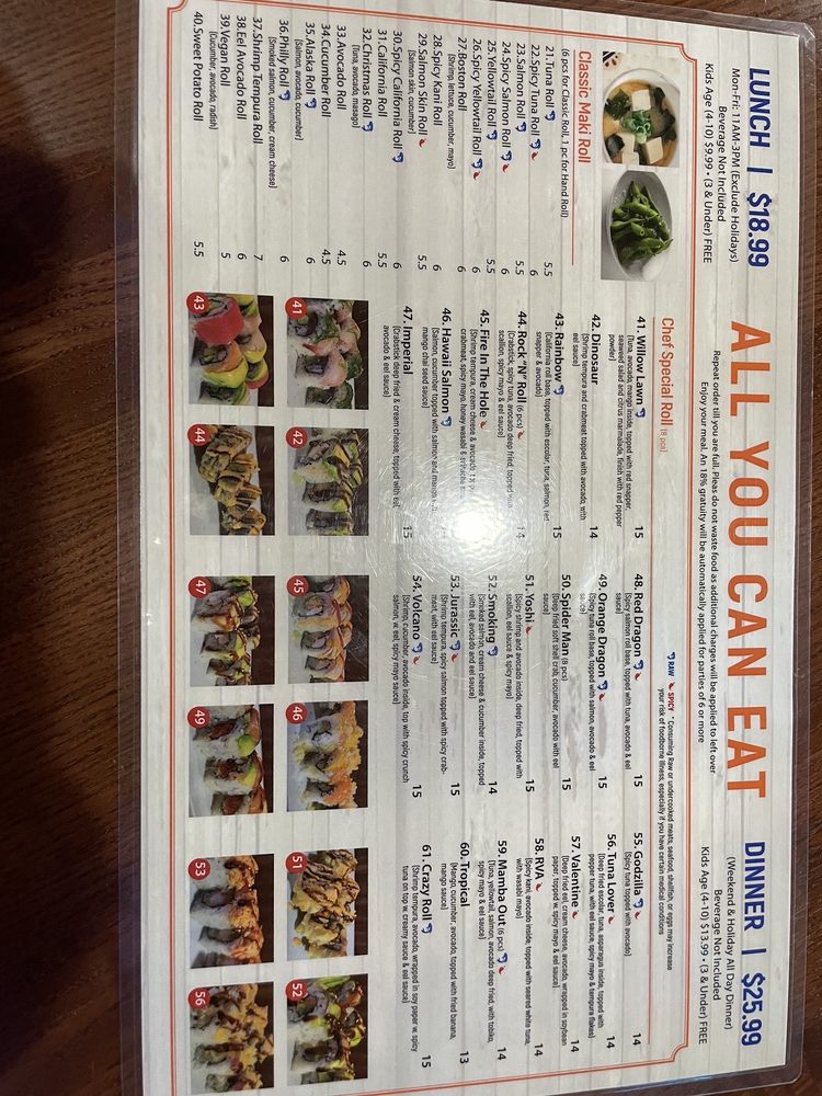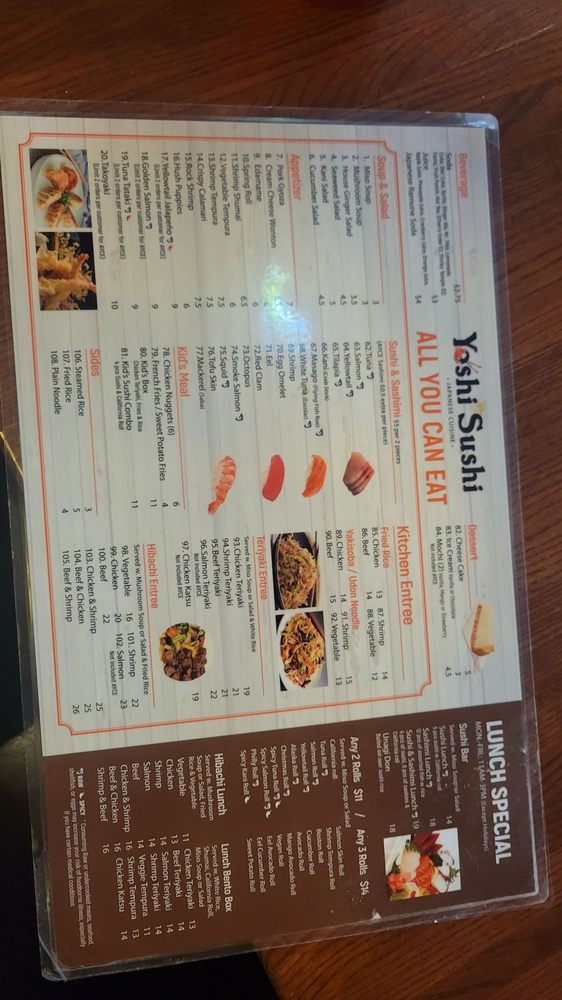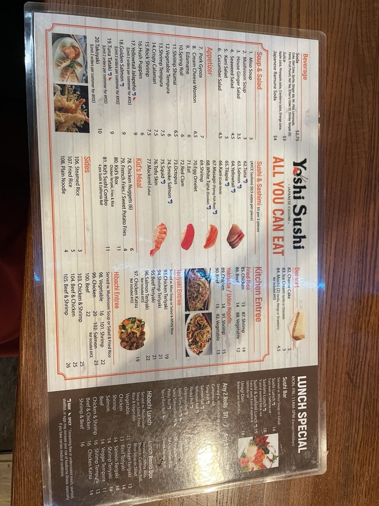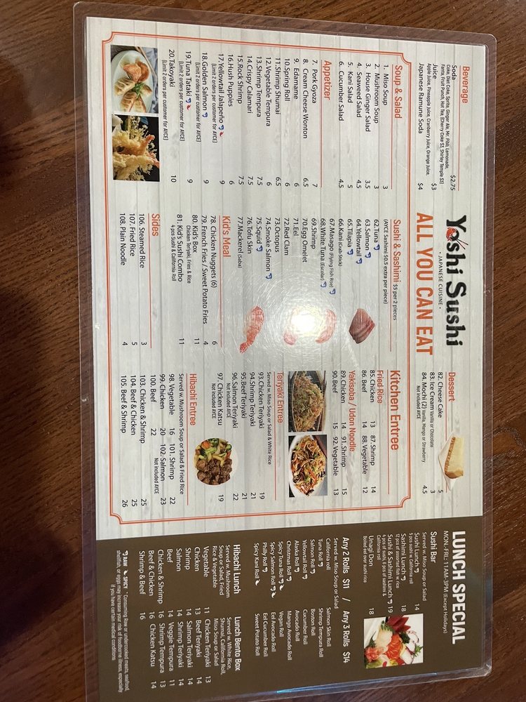 Yoshi Sushi Menu